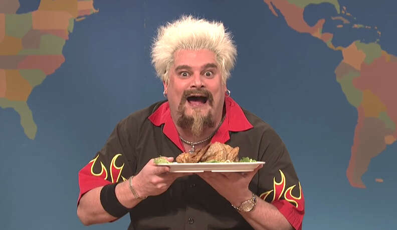 We're fans of the larger-than-life Guy Fieri and his unabashed devotion to Donkey Sauce. But Bobby Moynihan's impression of the guy (which Fieri has acknowledged he loves) is a ridiculous joy that's never been better than in this Weekend Update segment. Only one man can teach you how to stuff a chicken inside a duck inside a turkey inside a rabbit inside a pig inside of a baby cow inside of a big cow inside of a horse inside of a Cornish game hen.